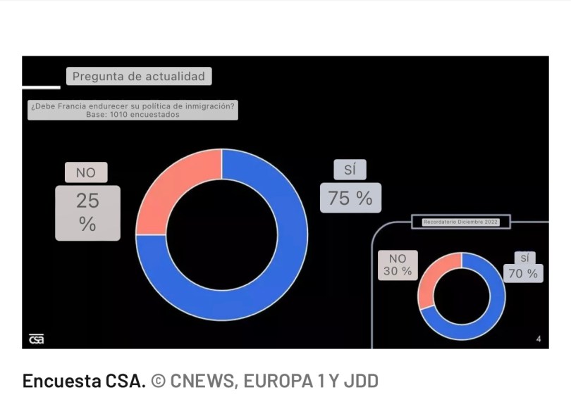 El gobierno de Barnier está preparando una nueva ley de inmigración, que quiere que la Asamblea Nacional apruebe. Según una encuesta de CSA realizada para CNews, Europe 1 y JDD, el 75% de los franceses cree que Francia debe reforzar su política migratoria.